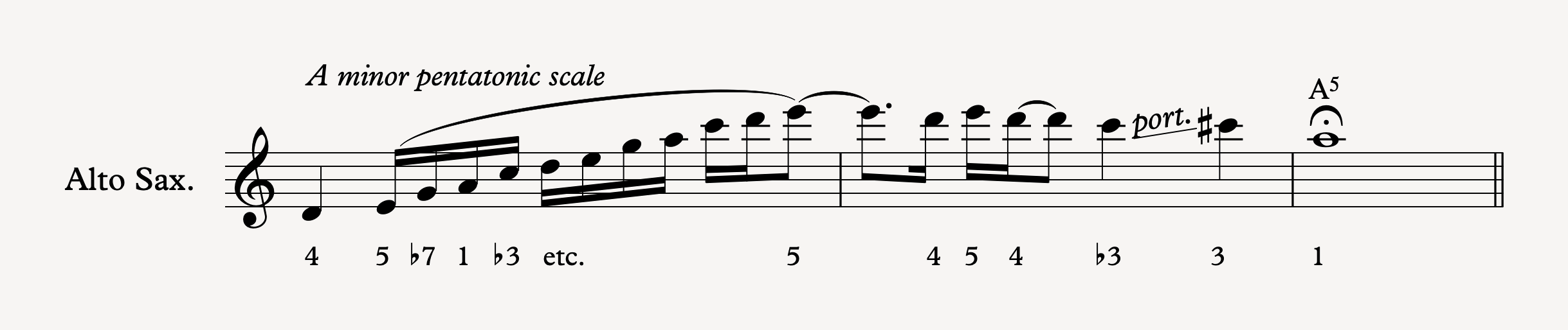 The song opens with an ascending C minor pentatonic scale by Terrace Martin (the song’s producer) on alto saxophone that sounds like someone stretching as the sun rises only to end up pulling a muscle: the sax hits it upper register, bending from the minor 3rd to the major 3rd, and choir kicks in, holding the fermata of a C5 chord as the jazz band fall down the stairs in scales, fills and rolls.