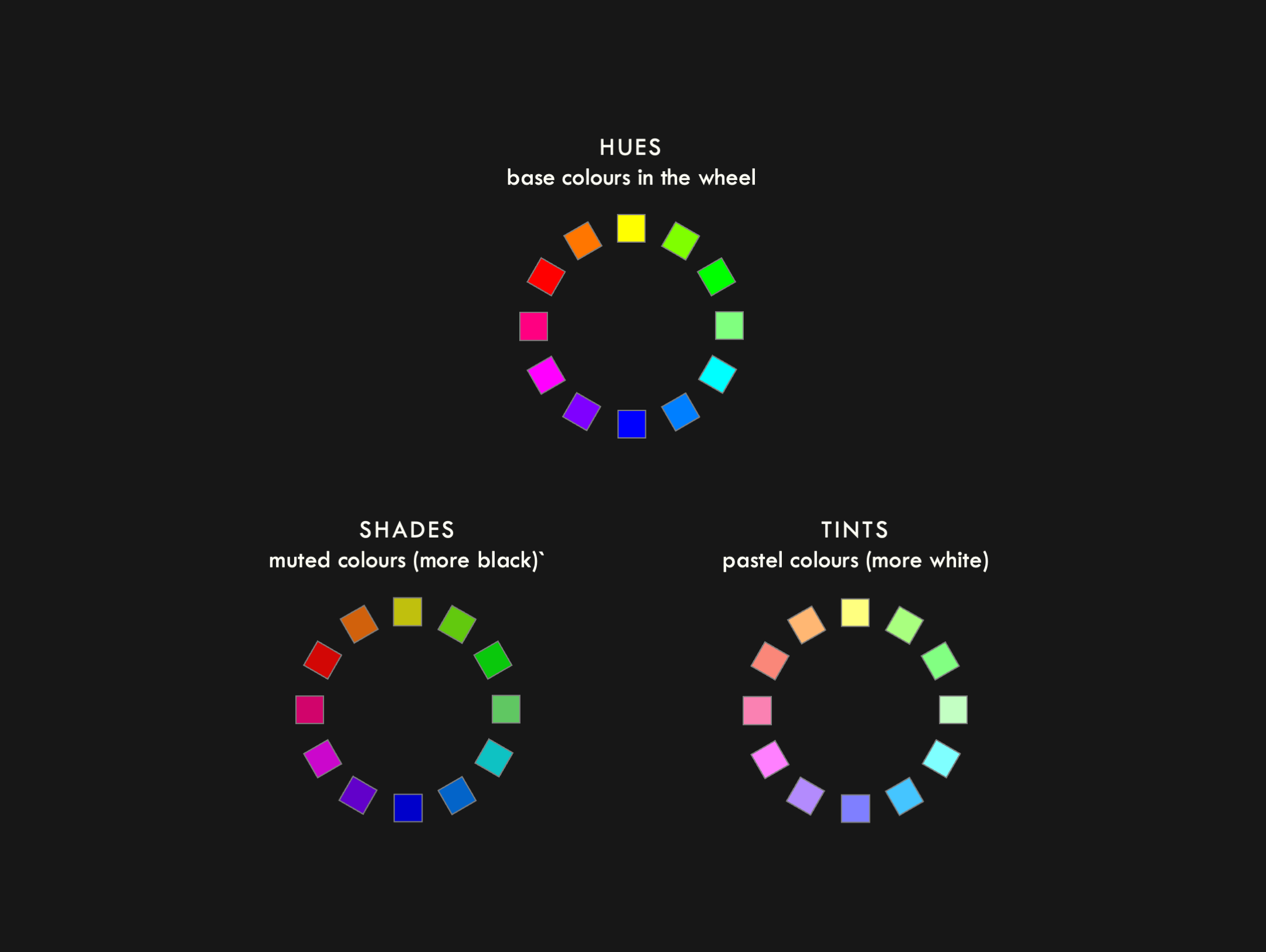 Hues, shades and tints